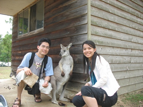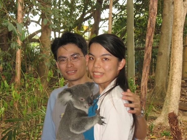 之後前往龍柏無尾熊公園,全澳洲只有昆士蘭省可以親手抱無尾熊拍照,在這可自費與無尾熊拍照,價格分成16澳幣(約當時的400塊台幣)及20澳幣(約當時的500塊台幣) ,雖然不便宜但是因為度蜜月一生只有一次,所以就忍痛給他花下去了,當然是最便宜的就好,有可以做個紀念就可以了,結果後來領的時候我們的照片她做錯了,竟然給我們比較貴的等級,真是賺到了.園內還可觀賞其他澳洲特有的動物.